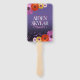 Celebre seu dia especial com esses fãs comemorativos de mão de matas florais, que apresentam elegantes letras brancas com confete roxo lavanda e terras de margaridas africanas coloridas em um fundo roxo violeta a preto. Personalize com os nomes dos recém-casados e a data do casamento. Adicione mensagens conforme desejado. O reverso mostra design idêntico. Design © W.H. Sim. Mais informações em zazzle.com/expressionsoccasions
