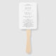 Ventilador de mão do programa de casamento elegante com um design simples e tradicional com seus detalhes de eventos em fontes serif.
