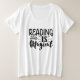Camiseta personalizada e de tamanho feminino com uma citação inspiradora "Ler é mágico" em tipografia mista.
