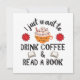 Uma caneca de café engraçada decorada com uma corrente de lâmpada e o ditado engraçado: Eu só quero beber café e ler um livro.