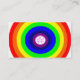 Este cartão de visita brilhante foi projetado para negócios lésbicas. Apresenta um arco-íris redondo com dois pequenos símbolos femininos cor-de-rosa, colocados lado a lado no centro do arco-íris. O texto rosa é personalizável. Uma versão ampliada do design está na parte traseira do cartão de visita.