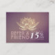 Instrutor de Meditação do Yoga Studio / Treinador de Vida / Healer / Mestre de Reiki / Modelos de cartão de negócios de Nomeação de Cartão de Referência de Terapia de Massagem - Lótus Dourada de Faux Elegante Moderno em Fundo de Grunge Roxo.