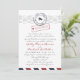 Um doce e simples viagem inspirou um convite de casamento. Mostrado em vermelho clássico e marinho com fontes cursivas inspiradas à mão. A parte de trás inclui espaço para texto adicional ou um endereço de site.