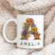 Uma linda caneca de café personalizada com uma borboleta e uma letra floral "B" monograma, com ilustrações decorativas de aquarela floral e de jardim foliar. Você pode personalizar facilmente esta caneca com seu nome ou criar um presente exclusivo para seus entes queridos.