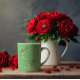 Flores silvestres de aquarelas monograma inicial, caneca de café verde. Perfeito para presente.