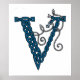 Uma serpente celta azul e prateada embrulhada na letra v.