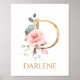 Elegante - Letra D, poster de viveiro, com rosa de pêssego cor-de-rosa e folhagem verde.