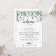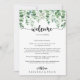 Esta carta minimalista de boas-vindas do eucalipto é perfeita para um casamento rústico. A design apresenta um eucalipto verde, pintado manualmente, com aquarela, inspiradora beleza natural. Personalize a frente com uma mensagem de boas-vindas para seus convidados e seus nomes. Personalize as costas com a programação de eventos e outras informações úteis.