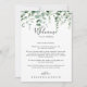 Esta carta de boas-vindas ao casamento de eucalipto minimalista verde é perfeita para um casamento moderno. A design apresenta galhos e folhas botânicas elegantes e desenhadas a aquarela e desenhadas à mão. Personalize a frente com uma mensagem de boas-vindas para seus convidados e seus nomes. Personalize as costas com a programação de eventos e outras informações úteis.