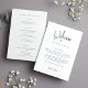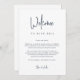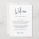 Compartilhe uma mensagem de boas-vindas para seus convidados de casamento, bem como um itinerário ou agenda dos eventos do fim de semana. Front apresenta sua mensagem de boas-vindas com ênfase em script manuscrito. Personalize o reverso com o dia do casamento ou o itinerário do fim de semana do casamento. Perfeito por incluir nas bolsas de boas-vindas do hotel ou entregar aos quartos dos seus convidados.