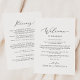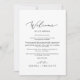 Estas delicadas cartas de boas-vindas e cartas itinerárias são perfeitas para um casamento moderno. A design romântica minimalista apresenta uma magnífica e elegante tipografia negra num fundo branco com um aspecto simples e limpo. A frente da carta apresenta uma carta de boas-vindas e a parte de trás da carta apresenta o itinerário do casamento. Estas notas são perfeitas para casamentos de destino e bolsas de boas-vindas de hóspedes.