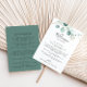 Esta carta verde de boas-vindas ao casamento de eucalipto neste verão é perfeita para um casamento moderno. A design apresenta lindas folhas verdes de eucalipto, pintadas manualmente, com cor d'água, inspirando encanto natural. Personalize a frente com uma mensagem de boas-vindas para seus convidados e seus nomes. Personalize as costas com a programação de eventos e outras informações úteis.
