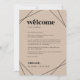 Estas cartas geométricas modernas de boas-vindas e cartas itinerárias são perfeitas para um casamento simples. O clássico design apresenta diamante geométrico boêmico e formas de triângulo e tipografia bóstica com um toque industrial moderno. A frente da carta apresenta uma carta de boas-vindas e a parte de trás da carta apresenta o itinerário do casamento. Estas notas são perfeitas para casamentos de destino e bolsas de boas-vindas de hóspedes.