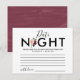 Estes cartões noturnos de marionagem são a atividade perfeita para uma recepção ou chá de panela de casamento outono. A design apresenta um pequeno buquê de flores de burgundy e pêssego em tipografia ousada para um visual elegante moderno. O suporte apresenta pinceladas de marsala com aquarela. Personalize estas cartas com o nome da noiva e do noivo.