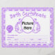 Letra do certificado de nascimento do bebê unisex