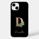 A capa de telefone preta elegante apresenta um monograma botânico dourado no centro.