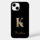 A capa de telefone preta elegante apresenta um monograma botânico dourado no centro.