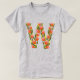Letra floral W camiseta básica da mulher