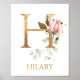 Elegante - Letra H monograma - poster com rosa de pêssego cor-de-água rosa e folhagem verde.