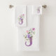 Design apresenta Monograma mais Flores num Design Floral. Inicial é a letra J. Conjunto de toalhas pessoais.