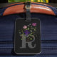 Design apresenta Monograma mais Flores num Design Floral. Inicial é a letra R. Black Lujag (Etiqueta de bagagem negra).