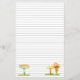 Papel de papelaria revestido com o tema cogumelos decorado com cogumelos ilustrado com filas de aquarela e cinzas leves. No verso está outro cogumelo e linhas para escrevendo.