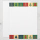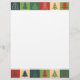 Jornais de Natal com quadrados de árvores de Natal multicoloridas que estão no topo e no fundo. Adicione seu nome ou saudação para um toque pessoal.