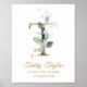 Elegante - Letra T Poster de Nascimento do Bebê com uma ilustração da folhagem verde e ouro no estilo de aquarela. Perfeito para um berçário ou quarto de criança.