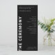 Os Programas de Casamento Minimalista Negro ajudarão você a compartilhar detalhes da cerimônia e festa de casamento com seus convidados. Este programa personalizável de cerimônia é excelente de casamento moderno, com letras brancas em negrito e tipografia minimalista contra fundo negro. Casamentos em preto e branco Também estão disponíveis convites, cartões de acesso, cartões de acesso e artigos de papelaria para o dia de folga, para consultar a coleção "Cartas de preto e branco para o casamento e artigos de decoração" na minha loja Wowweds.
