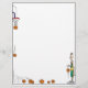 Este letterhead apresenta um jogador de basquete no canto inferior esquerdo, driblando uma bola e atirando na rede de basquete no canto superior esquerdo.