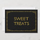 Placa de casamento em estilo art déco simples e elegante "Sweet Treats", personalizada com o seu próprio texto, apresenta uma moldura art déco dourada sobre um fundo preto.
