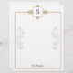 A carta de Natal é perfeita para seu uso pessoal. O fundo é um branco brilhante com dois designs florais prateados desbotados em ambos os lados. No topo está uma cor damasco dourada que cria um quadrado perfeito para suas iniciais. Na parte inferior você pode adicionar o nome do cheio. A Festa de Natal é uma maneira maravilhosa de manter contato com seus parceiros de negócios ou clientes nos feriados. Este é o tamanho perfeito para sua impressora para todas as suas cartas de feriado.