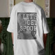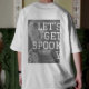 A trendy and eye-catching white t-shirt designed for Halloween enthusiasts, featuring a striking grayscale skull graphic, bold "LET'S GET SPOOKY" text, and intricate details like a vintage illustration and ornate accents. Perfect for costume parties, trick-or-treating, or casual spooky season wear, this apparel combines fashion-forward style with festive vibes. Crafted for comfort and durability, it’s an ideal addition to your Halloween wardrobe, suitable for adults and teens alike.