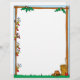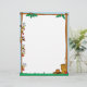 Esta engraçada carta de Ação de Graças apresenta um machado e um bloco cortante no canto inferior direito e vários perus espiando-se para fora da fronteira esquerda.