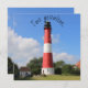 Red and white striped light house on the German North Sea Island Pellworm where a blue summer sky and the green grass welcome you. Original square photo by Christine aka stine1, shot in August 2020.