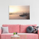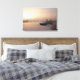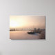 impressão de paisagem canvas de um nascer do sol sobre um canal congelado com neve e um barco com alguns moinhos de vento no inverno em Kinderdijk, nos Países Baixos.