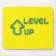 Upgrade your workspace with a burst of retro energy! This high-quality mousepad features a vibrant 8-bit "Level Up" pixel art design on a high-visibility neon yellow background.