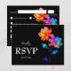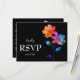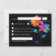 This RSVP card from the Petals & Pride collection is a vibrant and inclusive way to gather guest responses with clarity and care. Set against a rich black background, it features radiant rainbow florals in translucent hues of pink, orange, yellow, green, and blue—symbolizing unity, joy, and pride. Guests can confirm or decline attendance, select from a ready-to-choose menu including grilled salmon with lemon-dill sauce, filet mignon with red wine reduction, or vegetarian stuffed bell peppers, and note any special dietary requirements to ensure every guest feels welcome. The layout is clean and elegant, making it easy to respond with comfort and personality. Matching items available to complete your suite with pride and style.