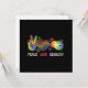 Este cartão de saudação mostra as palavras "paz, amor, igualdade" ao lado de um sinal de paz, coração e lábios de cor arco-íris, fazer que seja uma adição perfeita para membros e aliados da comunidade LGBTQ, especialmente durante o Mês do Orgulho.