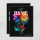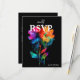 This RSVP card from the Petals & Pride collection combines vibrant design with thoughtful functionality, perfect for LGBTQ+ weddings that celebrate love in full color. Set against a rich black background, the card features radiant rainbow florals in translucent hues of pink, orange, yellow, green, and blue—symbolizing unity, joy, and pride. Guests can easily confirm or decline attendance, select from a ready-to-choose menu with options like grilled salmon, filet mignon, or vegetarian stuffed peppers, and specify any allergies to ensure a welcoming experience for all. A QR code offers the convenience of replying online, blending tradition with modern ease. Matching items available to complete your suite with elegance and inclusivity.