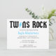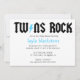 Design pelo © 2013 de LGC. Convite da rocha dos gêmeos. Aperfeiçoe para o musical ou o chá de fraldas temático do rock and roll. Procure os esquemas de cores azuis, cor-de-rosa e amarelos.