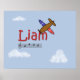O nome de Liam é escrito em notas musicais no céu azul com nuvens brancas puffy. Os fundos e nomes são intercambiáveis. Arte e layout de Deborah Miller