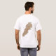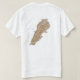 Um título e slogan editáveis acompanham a árvore de cedro verde em uma banda branca com bandas vermelhas acima e abaixo da bandeira libanesa na frente desta camiseta. O verso exibe um mapa detalhado do Líbano.