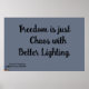 A LIBERDADE É APENAS o POSTER do CAOS é um item na linha HOUSE OF SUNSHINE de reproduções de arte colocadas em produtos concebidos para serem utilizados em casa ou no escritório. As frases são colocadas sobre um pano de fundo criado pela artista e escritora do Kentucky, GERRY K. FURGASON, e está incluída em sua série de palavras do SUL DRAWLS para viver e frases para lembrar, assim como sua coleção de PRAYERS AND PHRASES.