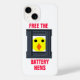 Esta capas de iphone bonita tem uma mensagem muito séria. O design apresenta um pintinho amarelo com olhos pretos e um bico laranja a espreitar atrás de uma gaiola quadrada de metal. O texto diz Liberte as galinhas da bateria. Reflete os meus problemas pessoais com a forma como os animais são mantidos e explorados para uso humano em todo o mundo. O texto vermelho em negrito diz "Liberte as galinhas-bateria"