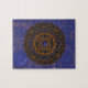 Esta mandala de Libra apresenta uma pedra de safira cercada pelo símbolo da placa, a constelação, e o símbolo alquímico de Ar entre filigrana e tecavernas.