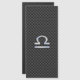 Um símbolo de cromo prateado como Libra Zodiac num fundo de impressão de design de textura de fibra de carvão. Um design moderno urbano para uma ideia personalizada de presente de aniversário de excelente. Use o link "Perguntar a este Designer" para entrar em contato conosco com suas solicitações especiais de design ou para obter assistência com suas necessidades de personalização.