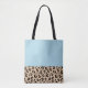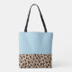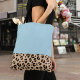 Make your look unique and fashionable with our light blue tote bag with leopard trim!