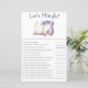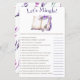 Vamos Mingle! Conhecer os outros convidados no seu evento. Este belo livro lilás intitulado game coordena com a coleção "É o começo de um novo capítulo".