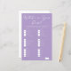 An elegant lilac purple bridal shower game What's In Your Purse for a spring afternoon event. Personalize these pastel purple paper sheets with your own point options for your friends. A fun customizable bachelorette party game with a minimalist solid color scheme.